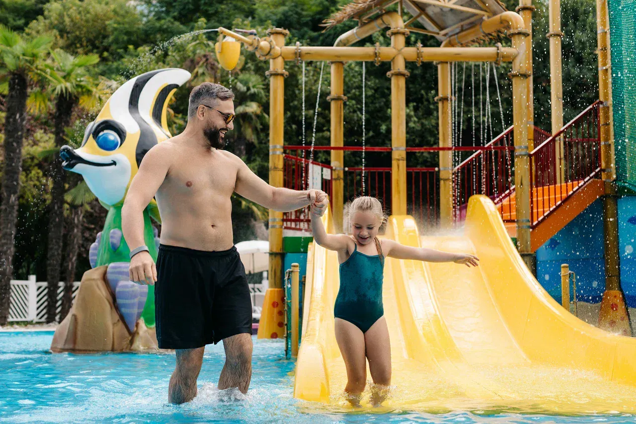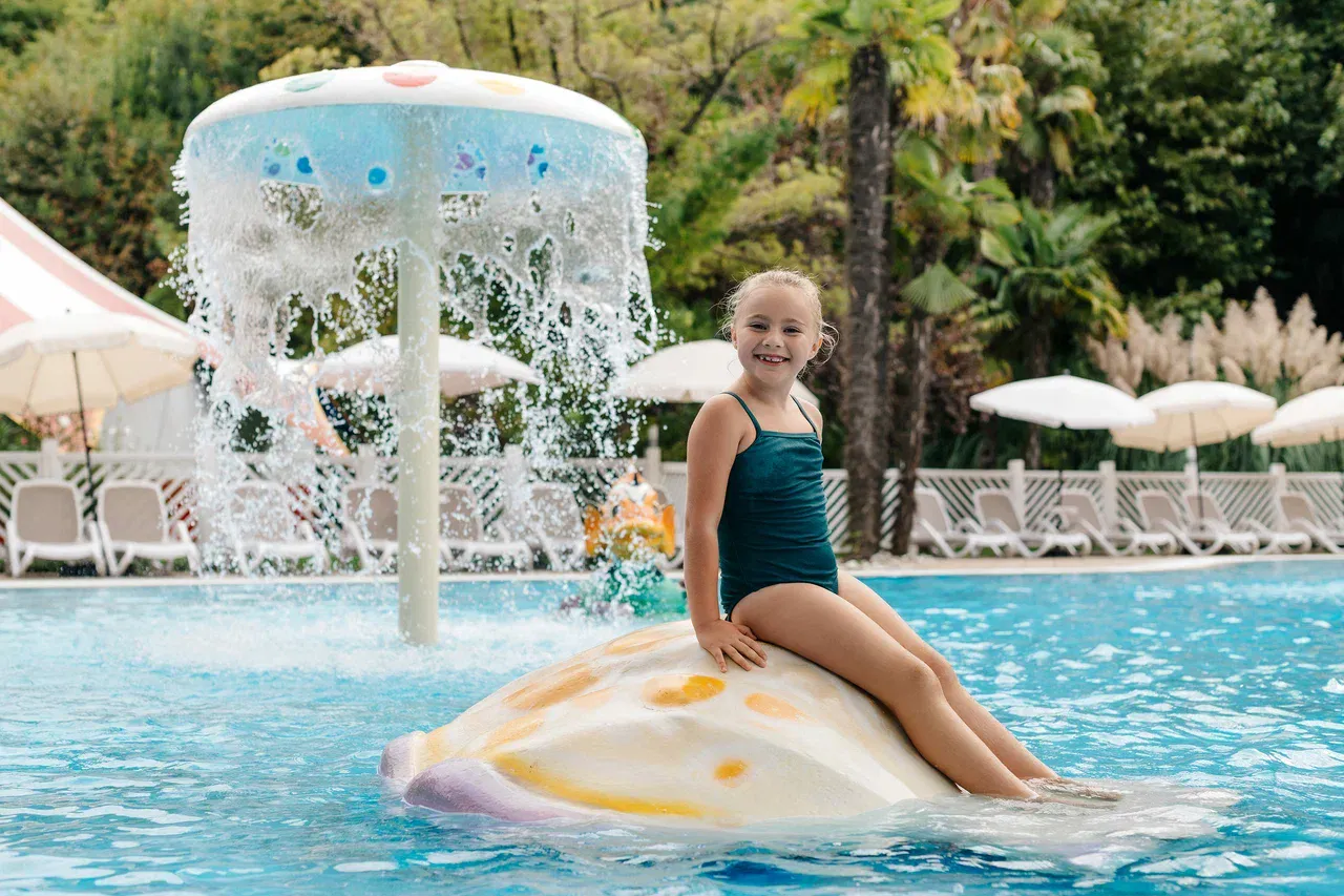 Крытый детский бассейн располагается в здании Термального комплекса. Кристально чистая вода подогревается, ее температура поддерживается в границах 25-27 градусов.