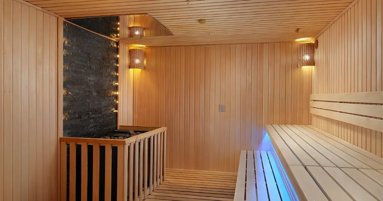 финская сауна, 80-100С, влажность 10–15%
