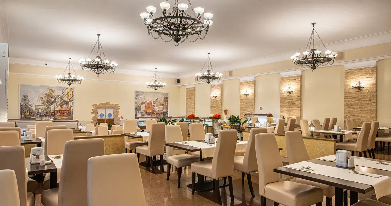 В основном ресторане курорта организовано питание по системе «шведский стол». Ежедневное меню включает в себя блюда из мяса и рыбы, а также всегда свежие фрукты и овощи. Никого не оставит равнодушными ароматная домашняя выпечка и сладкие блюда от кондитеров ресторана. Для детей разработано специальное меню, в которое вошли специальные диетические блюда из натуральных продуктов.
